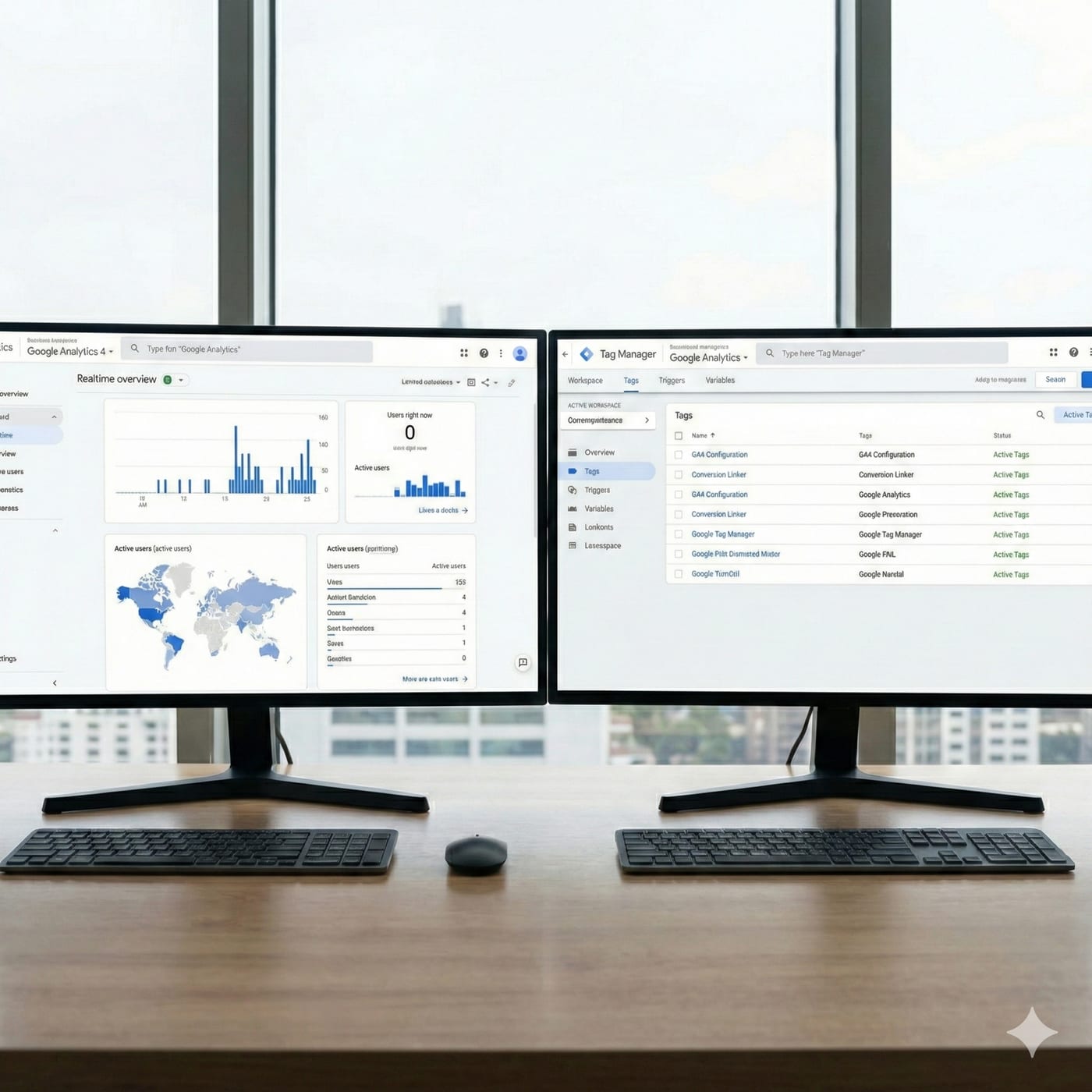 We take the guesswork out of your marketing. Our Analytics and Performance Tracking service puts the right tools in place from day one. We implement Google Analytics 4, Google Tag Manager, and platform pixels (Meta, TikTok, Google Ads) directly onto your site — cleanly, with a single container and documented tagging plan.
