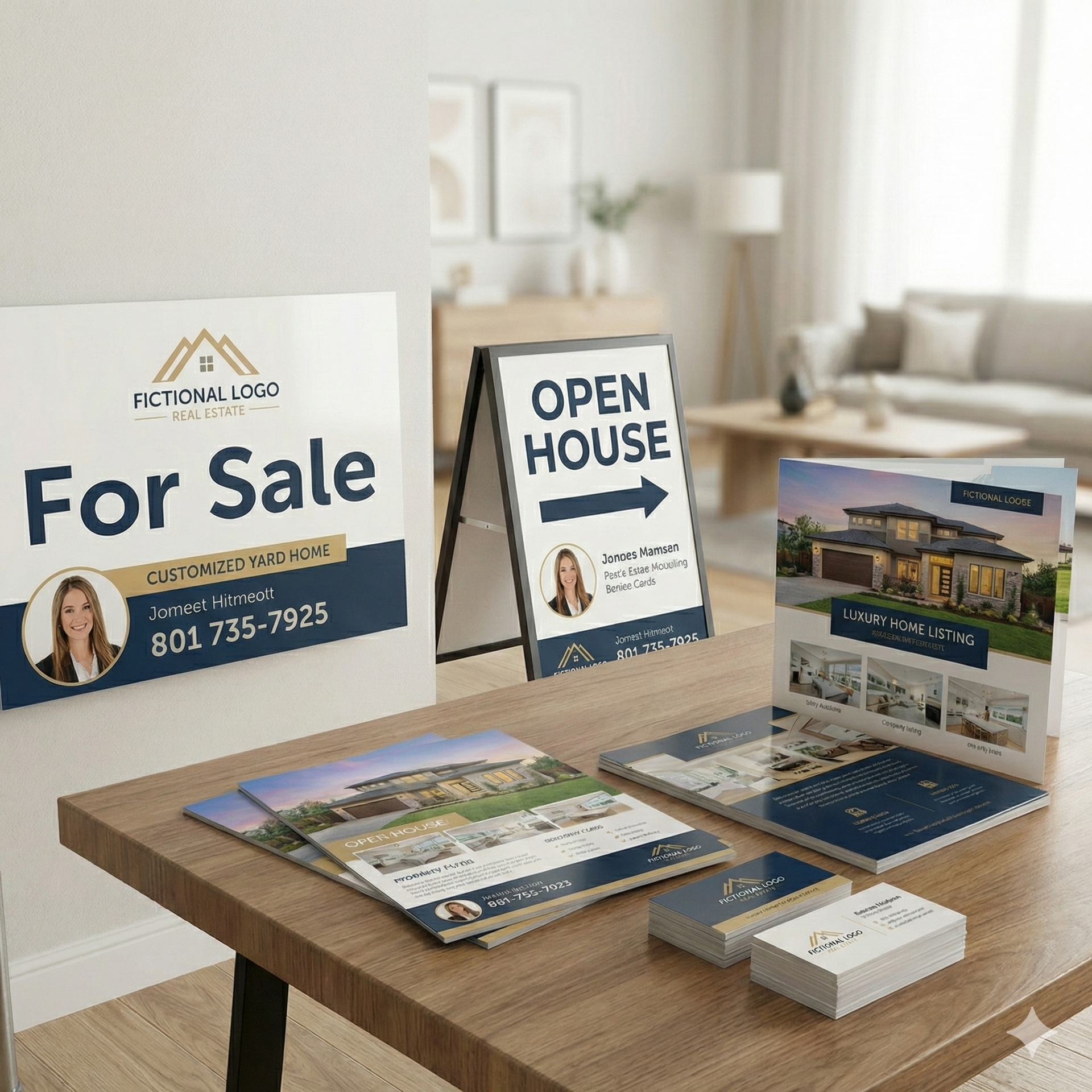 Turn "For Sale" into "Sold" with high-impact marketing materials. From durable yard signs to luxury open house brochures, discover the print tools top agents use to dominate the market.